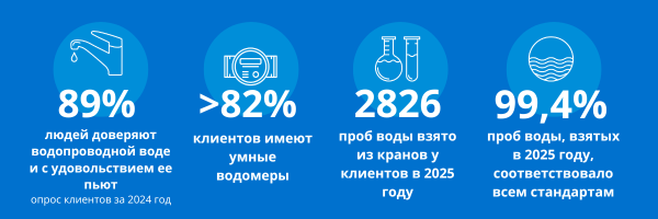 Мы каждый день ощущаем ответственность за питьевую воду почти для полумиллиона человек и за то, чтобы сточные воды очищались экологично и возвращались в природу. Эта ответственность помогает нам твердо держать фокус, ставить долгосрочные осмысленные цели, искать инновационные решения и вовлекать сотрудников и общественность в принятие решений, направленных на устойчивое развитие.