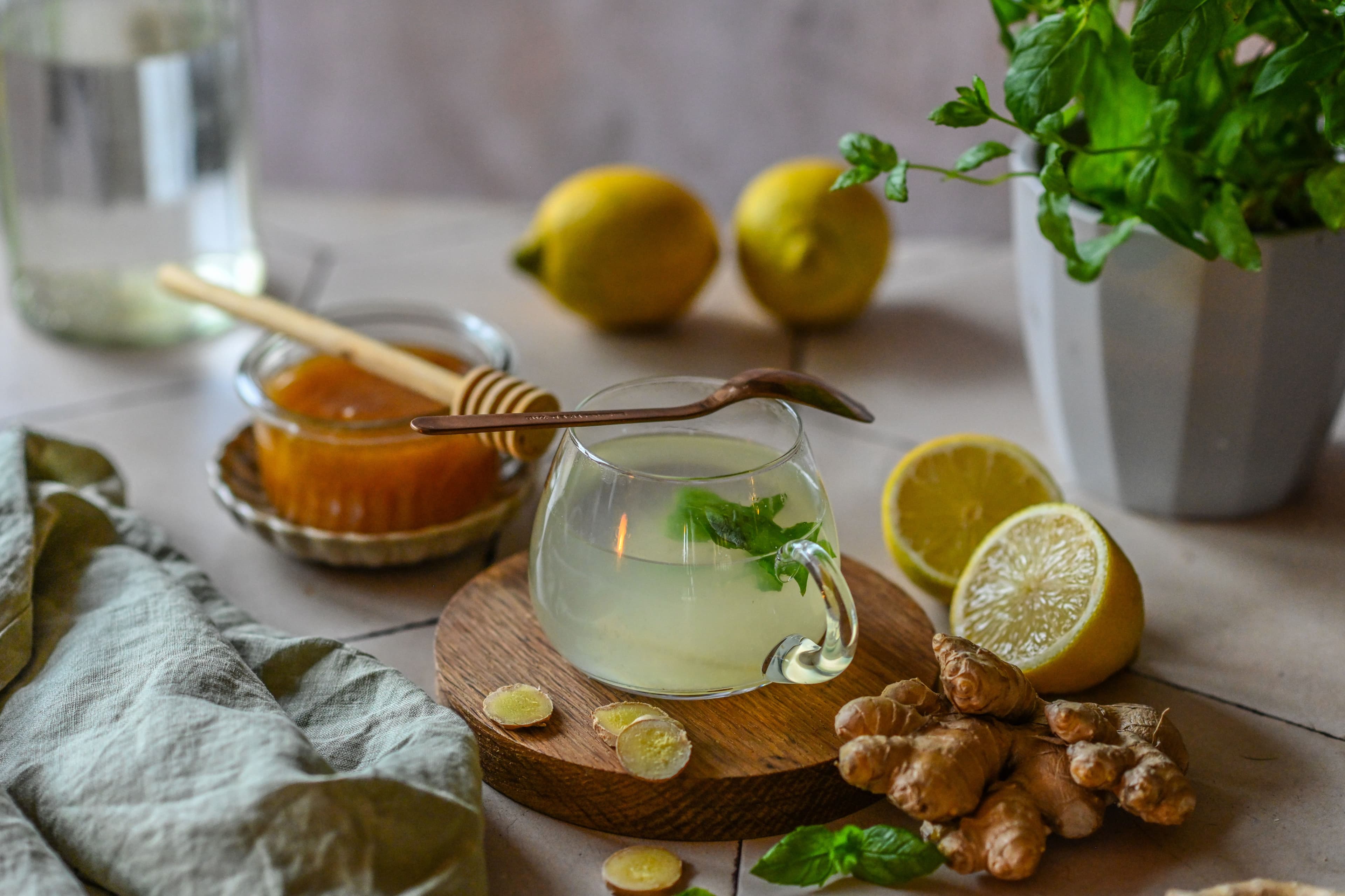 НАПИТОК С МЕДОМ, ИМБИРЕМ И МЯТОЙ