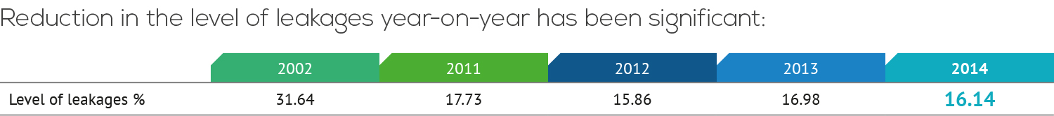 Year-on-year reduction in leakage level demonstrates a more sustainable usage of water resources. Figuratively speaking, constant reduction in leakage level means that nearly 13,000 m3 of treated drinking water is daily being saved up, when compared to the time ten years ago. 200,000 m3 of water was saved in 2014 compared to the year before. This is the amount of water that Tallinners consume in 3 days. In 2014, water loss in the distribution network was 16.14%, while in 2013 the same figure was 16.98%.